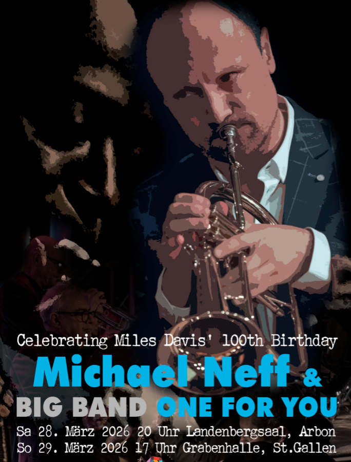 Zum 100. Geburtstag von Miles Davis präsentieren Michael Neff und die Big Band ONE FOR YOU eine Auswahl von Stücken, die in den hochproduktiven 50er und 60er Jahren die Ohren der Welt aufhorchen liessen. Die Gäste erwartet ein Abend von gleichermassen bedeutsamer wie bedeutender Musik.
